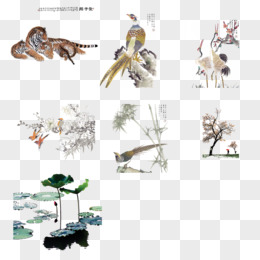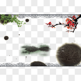 中国风山水庭院画免抠元素
