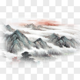 一组国潮风手绘书卷水墨山川插画套图合集元素
