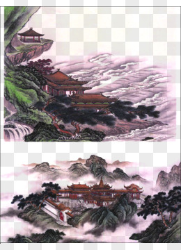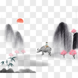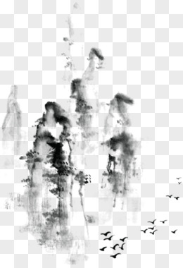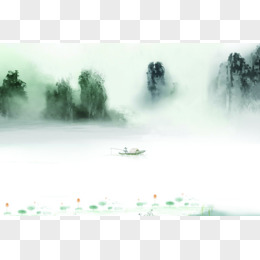 唯美山水画风格水仙花植物笔墨边框免扣元素