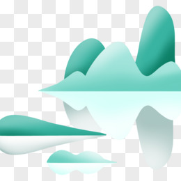 一组手绘青色水墨风景插画套图元素三