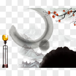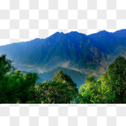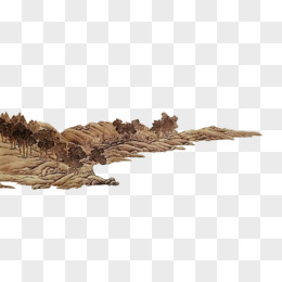 一组手绘国潮剪纸风山峦山峰套图系列五素材