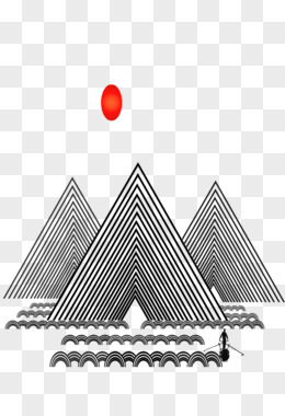一组手绘国潮剪纸风山峦山峰套图系列一素材