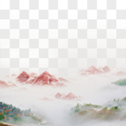 手绘水墨风山水风景免抠素材