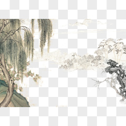 手绘水墨风山水春景免抠元素