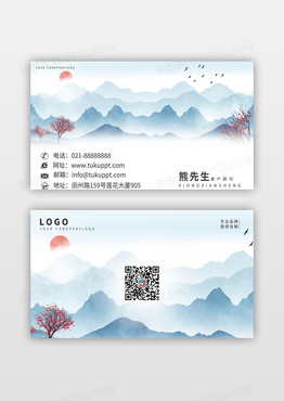 浅色中国风大气山水风PVC名片设计透明pvc名片