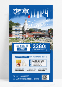 蓝色山西旅游旅游攻略风景景区旅行景区营销海报