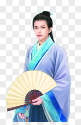 古代青衣女子扇子矢量免抠图片