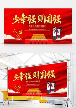 大气红色少年强则国强党建宣传展板