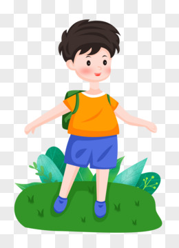 手绘卡通男孩夏令营郊游