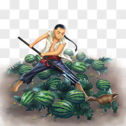手绘少年闰土西瓜地捉猹免抠元素