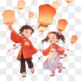 插画风国风少年放飞孔明灯