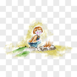 火堆少女寒冷手绘