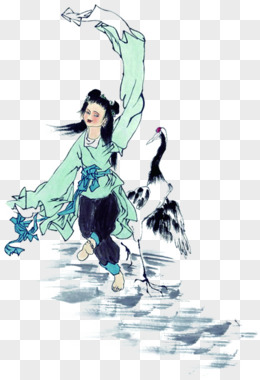 手绘仙鹤少女中国风