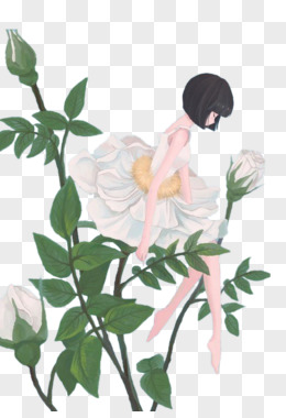 手绘扁平风唯美少女捉蝴蝶免抠元素