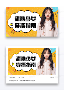 黄色孟菲斯风格甜酷少女穿搭指南视频封面图设计