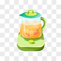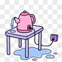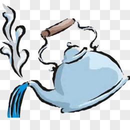 手绘卡通烧开的水壶撒了一地的水免抠元素