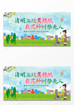 蓝色卡通清明上坟莫烧纸清明节宣传展板清明节清明扫墓