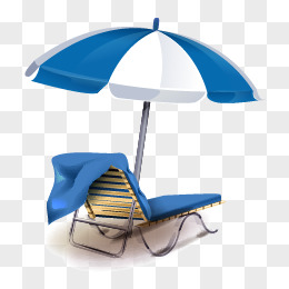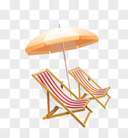 卡通手绘女孩做沙滩椅看电脑免抠元素