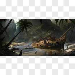 手绘插画小男孩在沙滩上玩沙免抠素材
