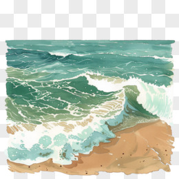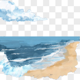 手绘插画风唯美治愈系海岸海边海浪元素