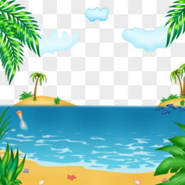 手绘沙滩海水蓝天