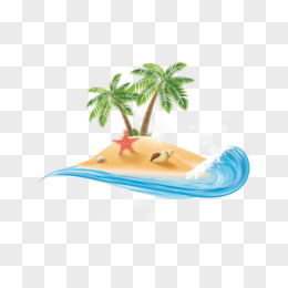 卡通手绘海边风景沙滩椰树海水