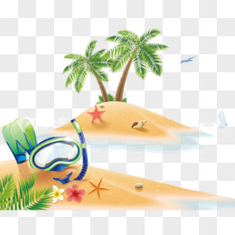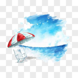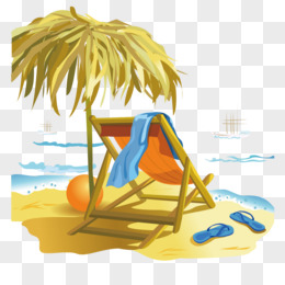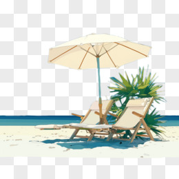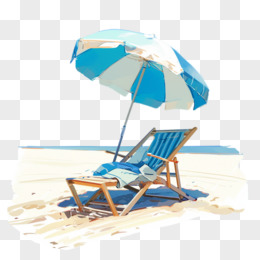 插画风夏日海边的躺椅和遮阳伞免抠元素