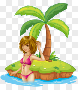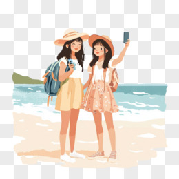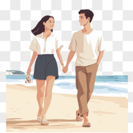 3D卡通一对年轻情侣在海边手牵手散步免抠元素