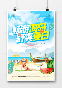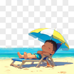 插画风夏天在海边躺椅休息的小男孩免抠元素