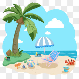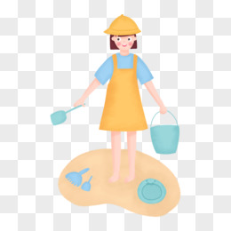 卡通手绘女孩在沙滩上玩沙子免抠素材