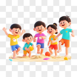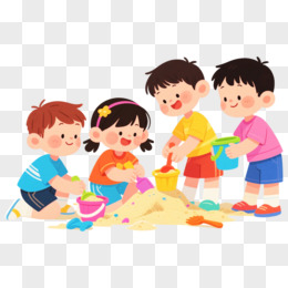 手绘小伙伴沙滩堆沙堡玩沙子素材