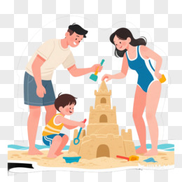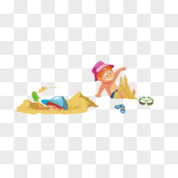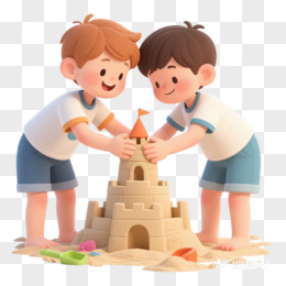 手绘卡通小伙伴一起沙堆沙堡免抠素材