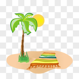 手绘卡通沙滩上晒太阳的美女免抠素材