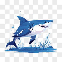 手绘卡通可爱咧嘴疑惑的鲨鱼元素