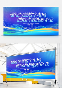 蓝色科技风建设智慧电网促进社会发展电力展板