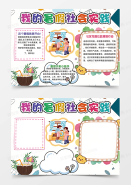 我的暑假社会实践多彩简约卡通边框手抄报