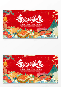 红色国潮创意风舌尖上的火锅火锅美食火锅店展板美食展板
