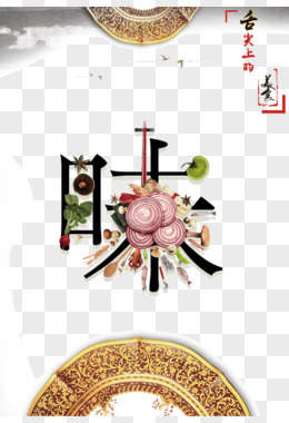 舌尖上的美食艺术字海鲜鱼虾蛤蜊