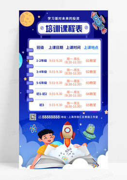 蓝色插画学习计划课程表格培训课程表手机文案海报设计