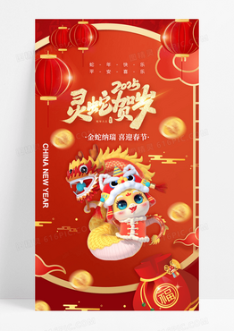 红色3D灵蛇贺岁2025年蛇年手机宣传海报