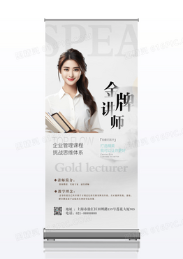 灰色时尚金牌讲师人物介绍宣传展架设计人物