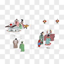 手绘灶王爷侍奉小仙手捧恶罐形象素材