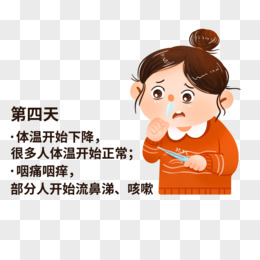 手绘女孩生病第四天症状免抠元素