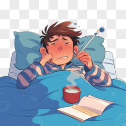 手绘卡通生病卧床免抠元素