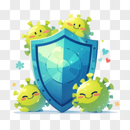 卡通风生病盾牌防护病毒免抠元素