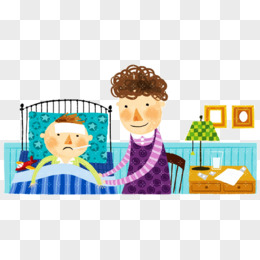卡通手绘小朋友感冒生病躺在病床上免抠元素