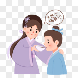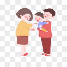 手绘卡通爸爸妈妈给小孩子喂药素材