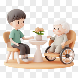 3D卡通风格养老院照顾关心老人的男孩免抠元素
