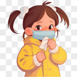 卡通手绘可爱女孩生病戴口罩免抠元素
