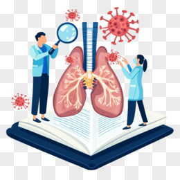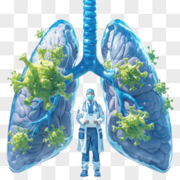 卡通肺炎日拿着病历的医生站在被病毒感染的肺旁边免抠元素